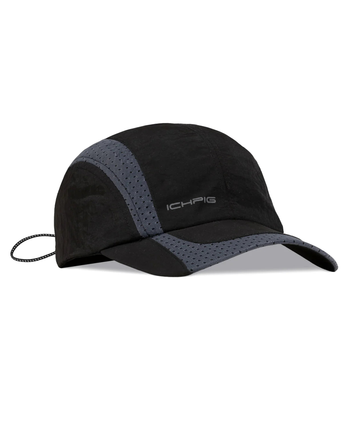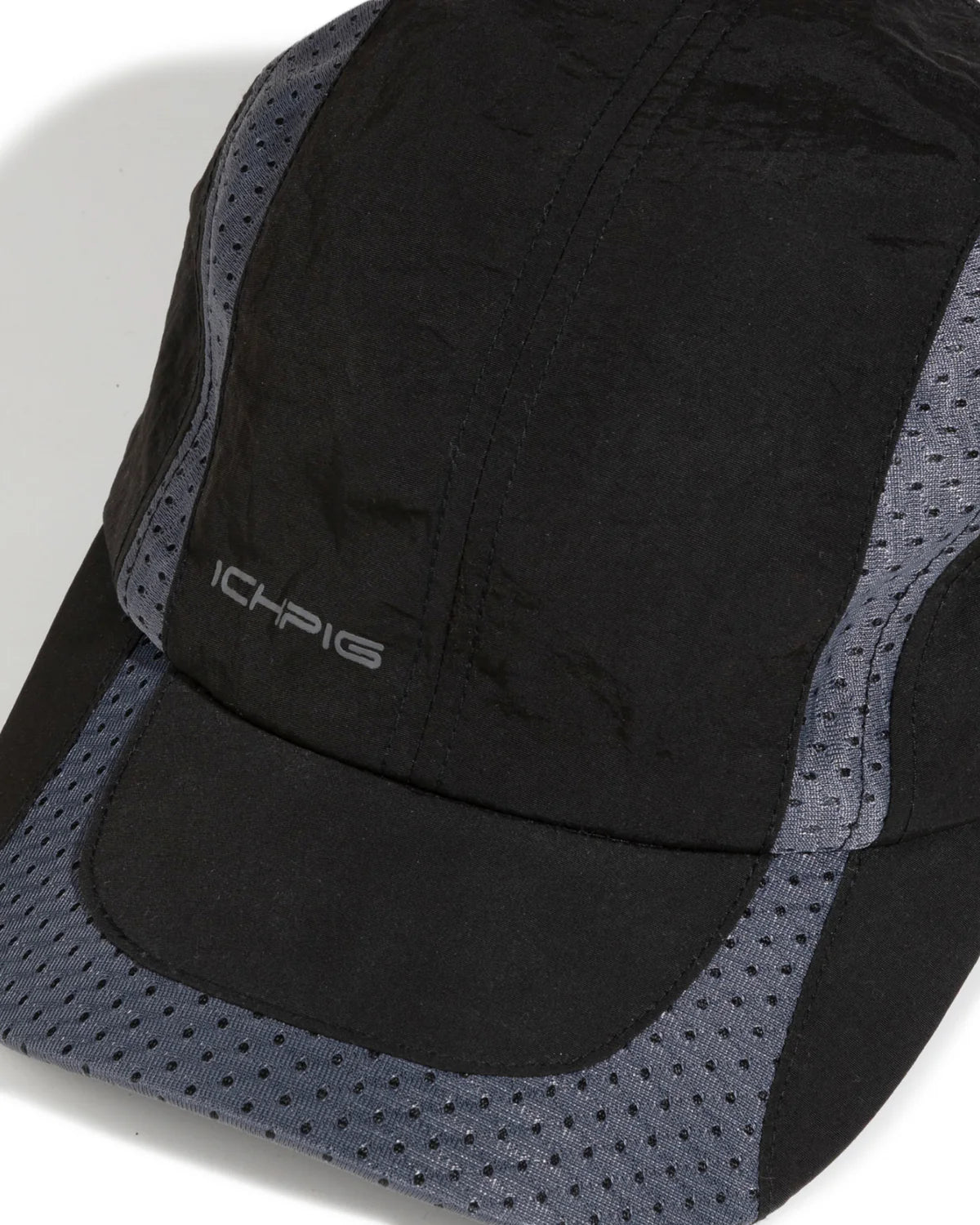 - Nylon taslon construction with mesh side panels for breathability- ICHPIG® Genesis logo printed on the front right panel- Reflective pull cord with cord lock for adjustability - Custom low profile shape with a slightly curved brim