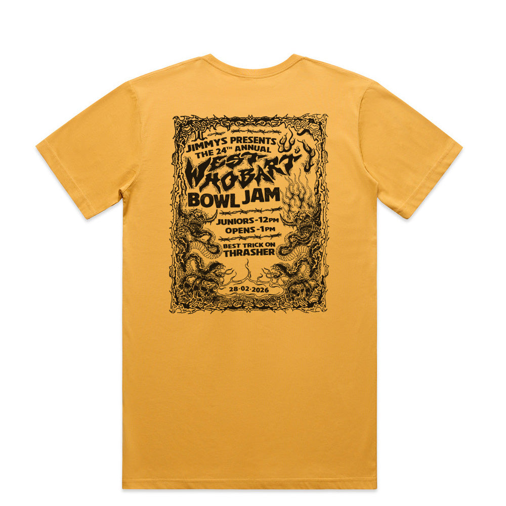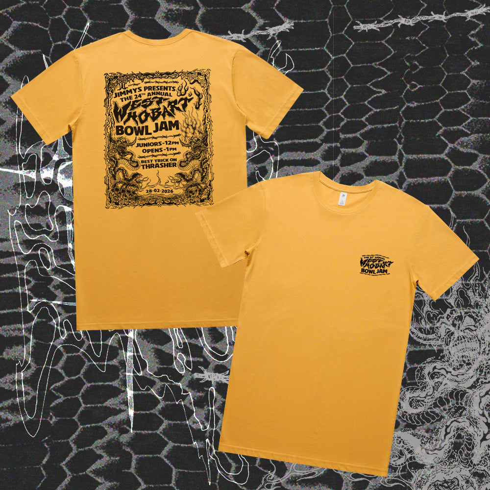Printed for the West Hobart Bowl Jam, this tee celebrates one of Tasmania’s most iconic skate events and the community that keeps it alive.